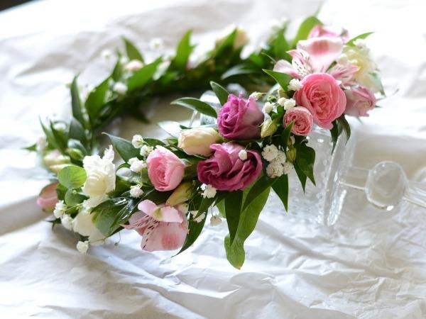 Päähän, koristeeksi,kastemaljan ympärille. Voidaan sitoa puoliksi kukitettuna tai kokonaan kukitettuna toivomillasi sävyillä.